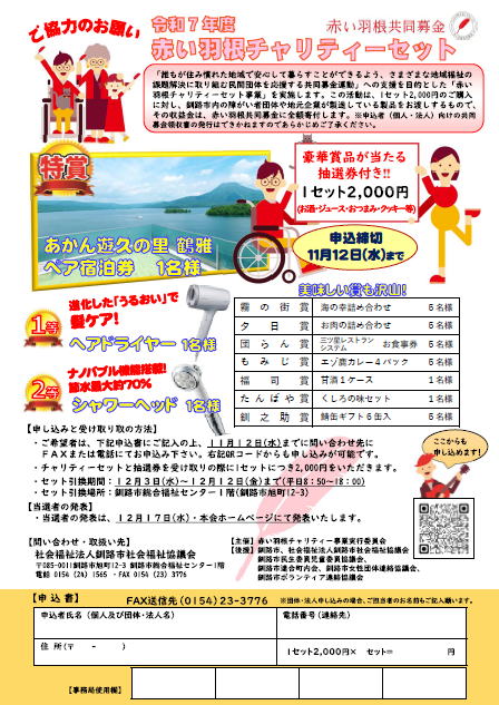・ご希望者は、申込チラシにご記入の上、11月12日(水)までに赤い羽根チャリティー実行委員会事務局